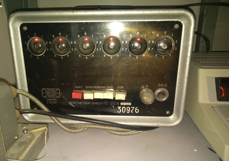 Во время интенсивного счета огоньки шустро "крутились", и в войне интерфейсов прибор проиграл. Но его стабильный ламповый блок питания выдает 400 вольт и сегодня. |