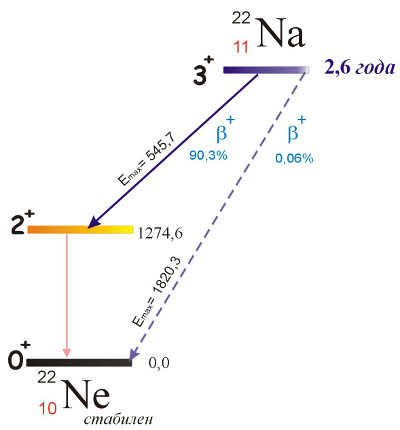 | Найдите на спектре натрия-22 пик, которым "жизнь кончает позитрон" |